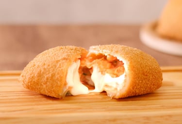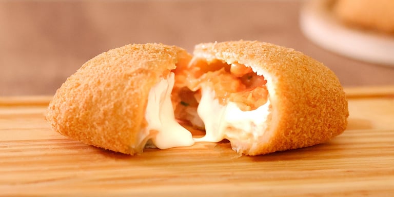 Recheio de peito de frango, massa especial de trigo e requeijão cremoso.