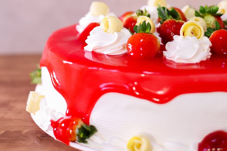 Pão de ló de chocolate, morangos selecionados, creme confeiteiro, merengue, brigadeiro, cocada e cobertura de ganache.